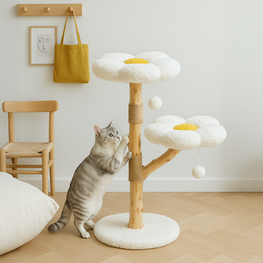 Daisy Dream Cat Tree – Multi-Level Wooden Perches & Plush Play